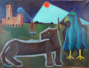 acid mine pigments, laser etch, acrylic on aluminum panel